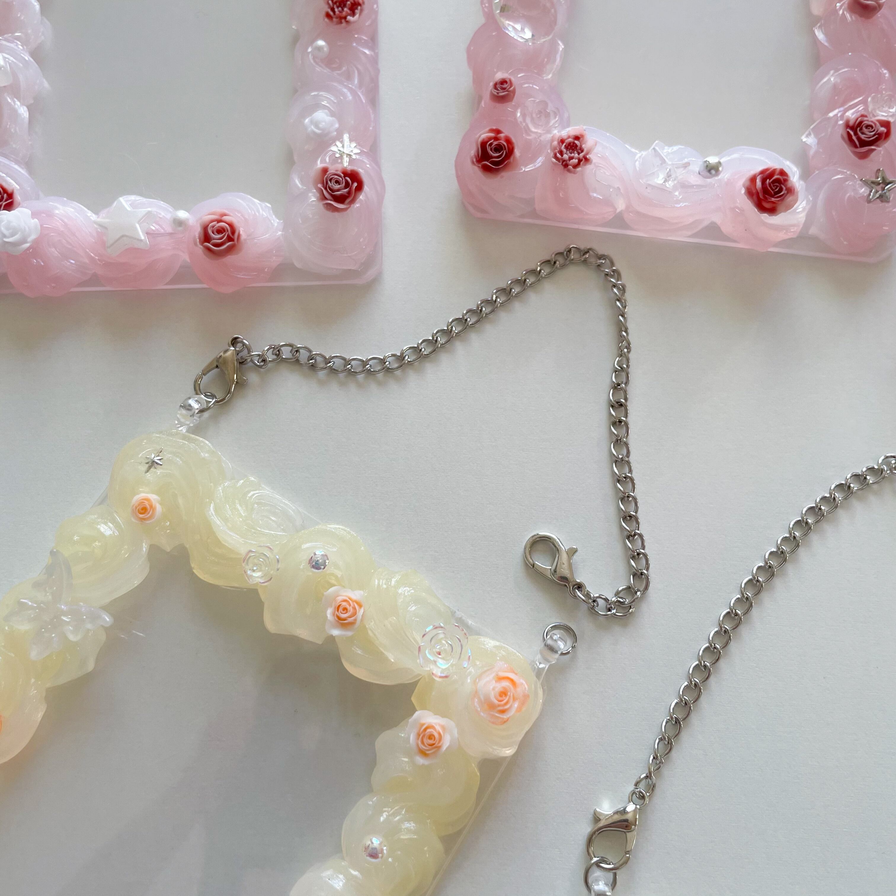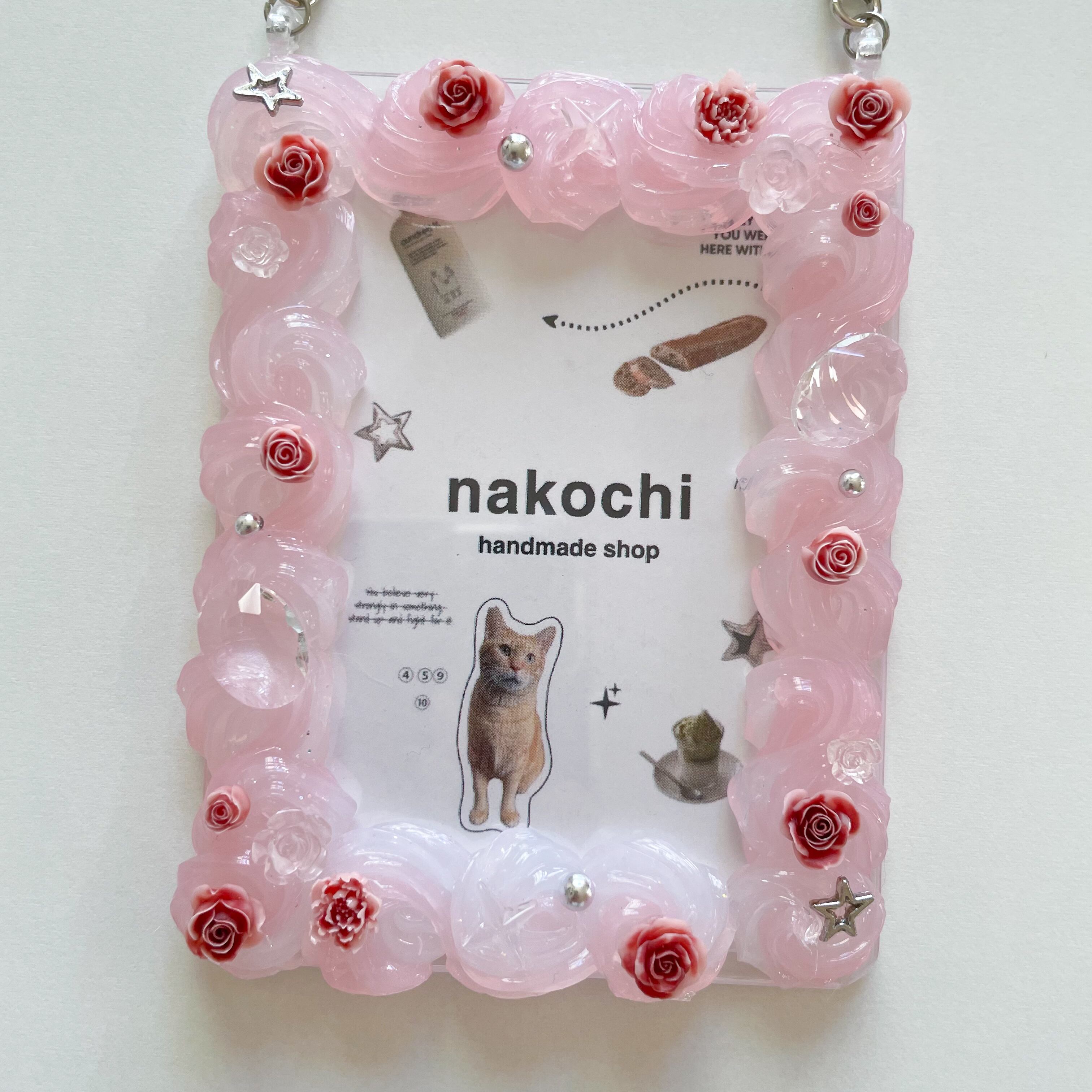 くすみピンク×クリア ホイップデコ キーチェーン付き