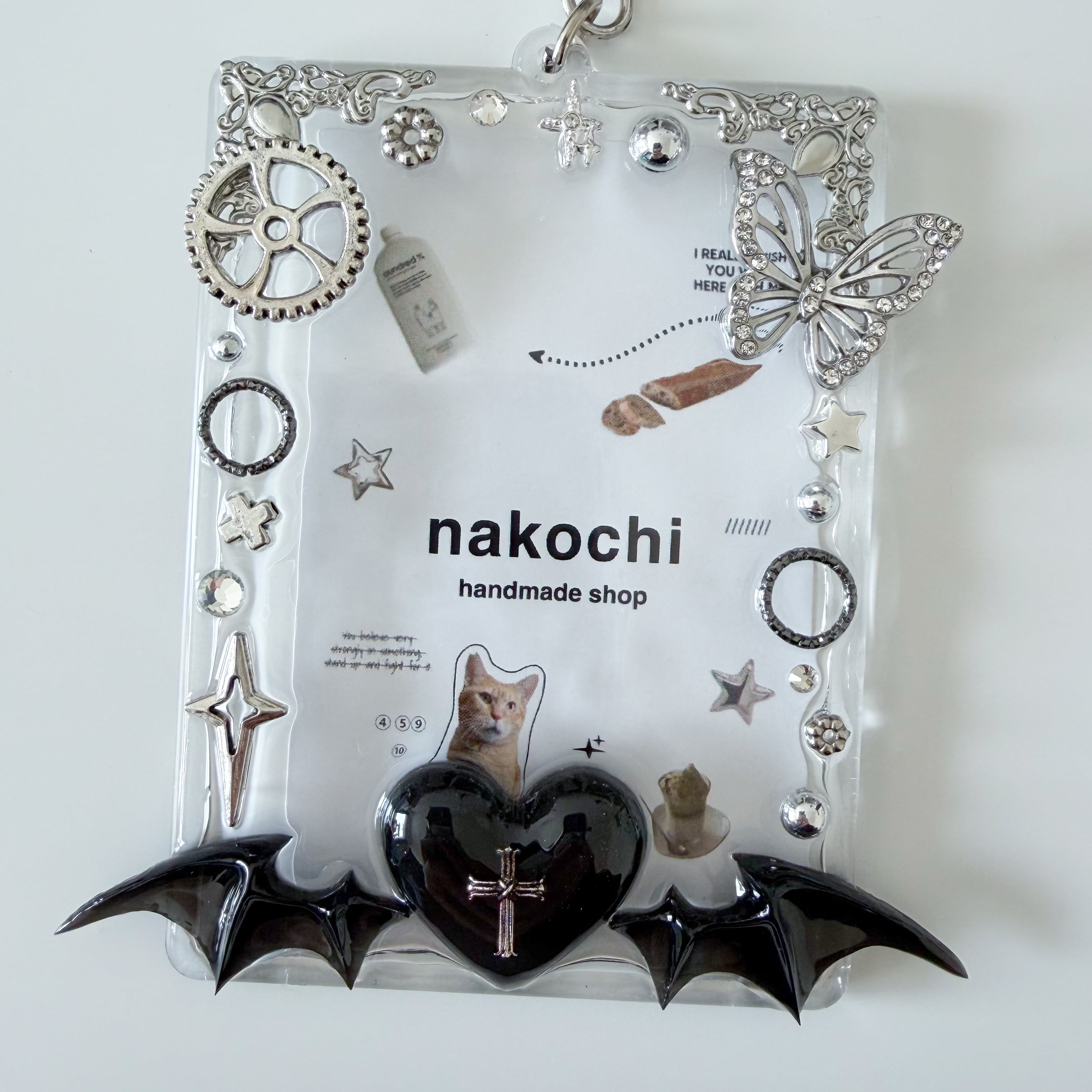 ブラック×シルバー フォトケース キーホルダー チェキサイズ