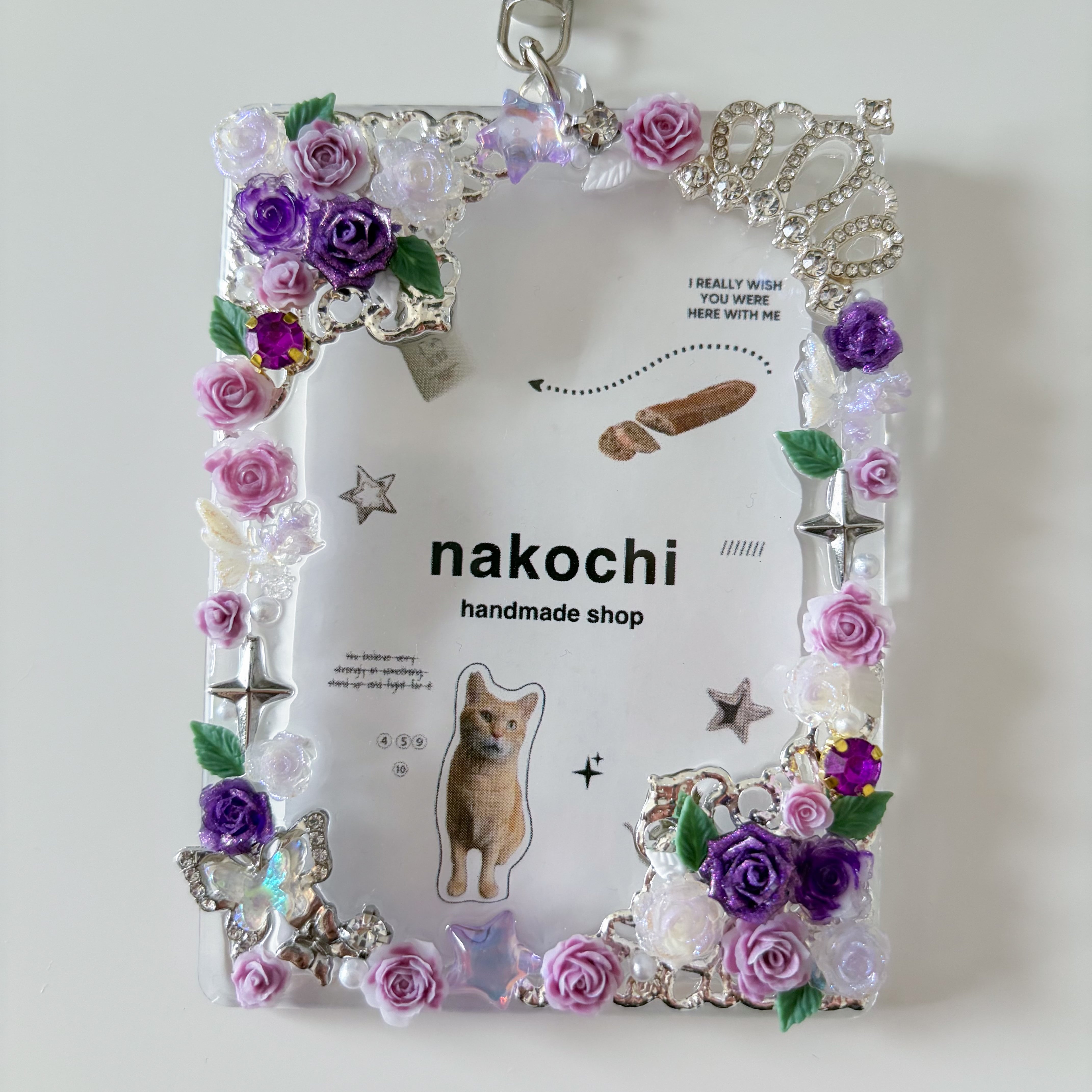 レジンを使用したフォトケースキーホルダーです